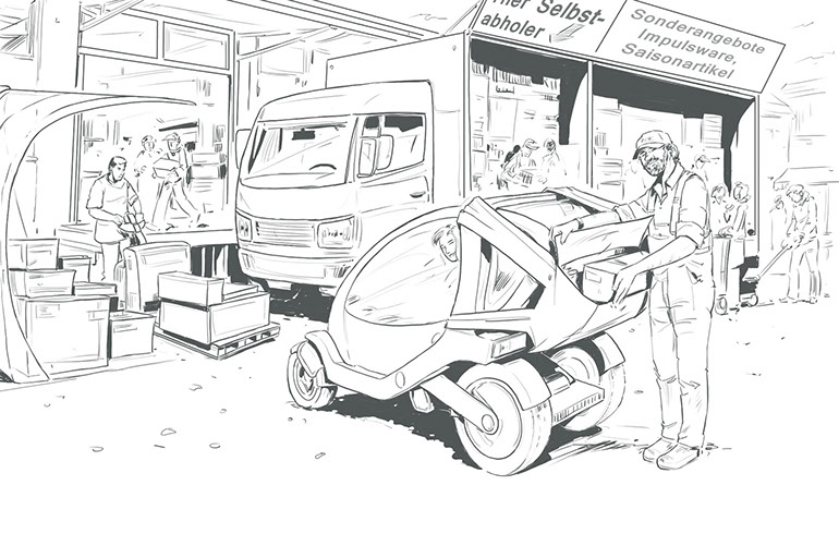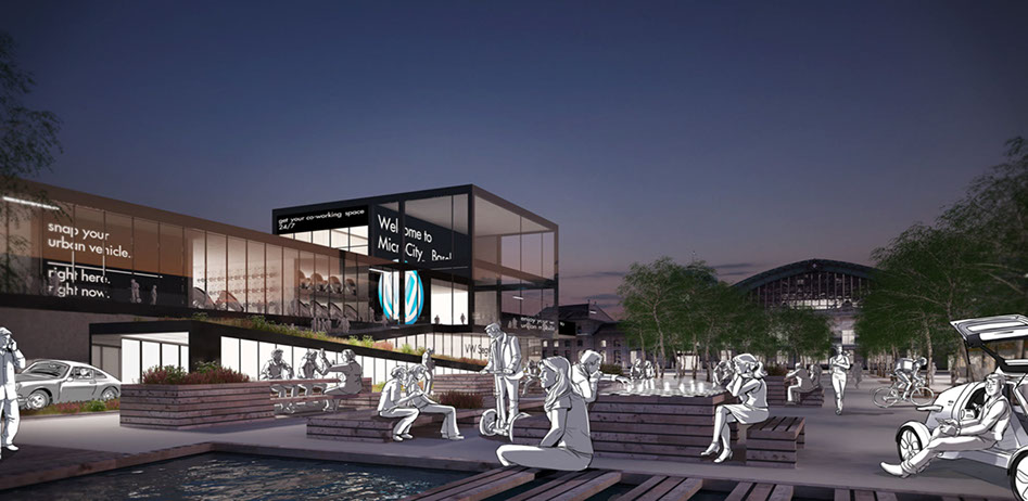wickelte orange edge das Konzept der MicroCity, eine Infrastruktur für moderne Mobilitätsdienstleistungen, die, angepasst an das jeweilige städtische Umfeld, Parken, Sharing-Angebote, öffentlichen Nahverkehr, Services, Dienstleistungen und kulturelle Angebote miteinander verbindet. Die MicroCity zeigt, wie in Zukunft Mobilität und städtische Funktionen auf neuartige Weise miteinander verschmelzen und dabei lebendige Stadträume entstehen können.