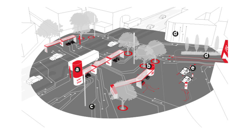 Im Rahmen des EU-Forschungsprojektes „Nodes“ entwickelte orange edge für die Stadtwerke Osnabrück Entwurfsprinzipien für Mobilpunkte. Sie machen deutlich, wie multimodale Bewegungsabläufe an einer Station strukturiert und optimiert werden müssen, um einen hohen Nutzungskomfort, z.B. im Umsteigevorgang zwischen ÖV und Rad, zu erzeugen. Ebenso wird gezeigt, wie die neuen Angebote im Stadtraum gut sichtbar werden und ihn gleichzeitig gestalterisch und funktional aufwerten. Flow Design (eine Gestaltung, die verkehrliche Aspekte unterstützt) und Urban Design (Gestaltung im Stadtraum) wurden dabei miteinander verbunden.