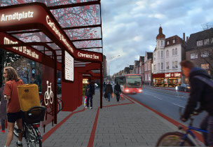 Die Prinzipen wurden beispielhaft auf den Arndtplatz übertragen. In einem Vorentwurf wird dargestellt, mit welchen Ausstattungselementen und in welchen Stufen der Platz zu einer mittelgroßen Mobilitätsstation weiterentwickelt werden kann. Die Bewegungsmuster und Nutzungsintensitäten des Platzes wurden in Filmanimationen visualisiert. Das Konzept diente als Grundlage für einen Gestaltungswettbewerb, der 2016 erfolgreich durchgeführt wurde.