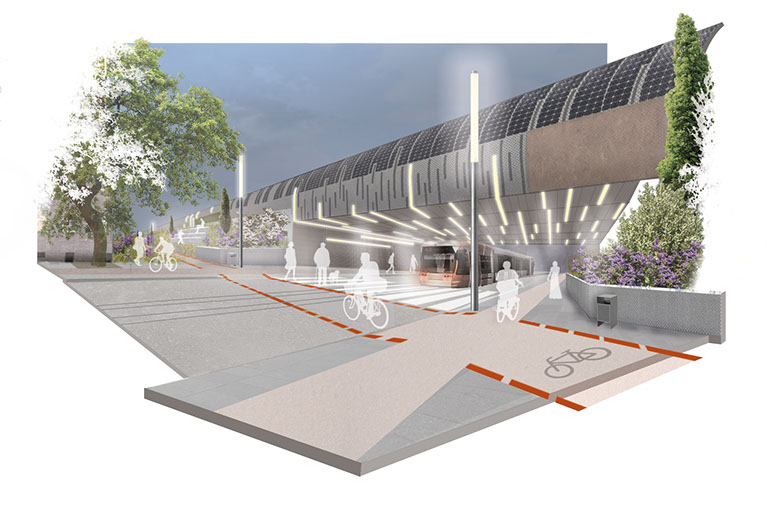 Der Fremdkörper A57 wird so zu einem „Fast-Lane-Park“ und einem integralen Bestandteil des Stadtraums.