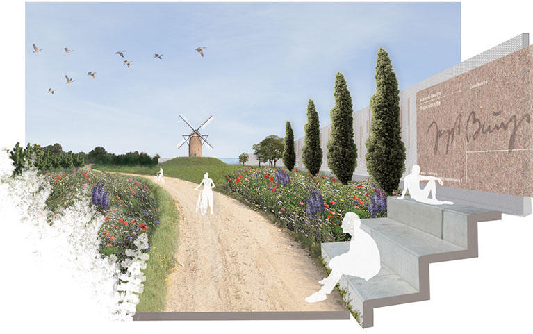 Entlang der Autobahn und der Lärmschutzwand soll ein linearer Landschaftspark mit durchgängigem Radwegenetz entstehen. Hierbei sollen zum Teil bereits bestehende und genutzte Wirtschaftswege oder Trampelpfade mit einfachen Mitteln ausgebaut und der Öffentlichkeit zugänglich gemacht werden.