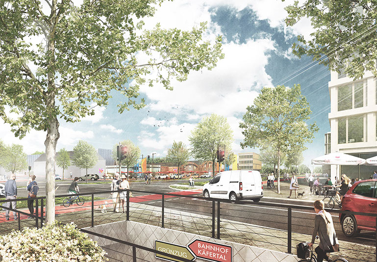 Nachdem sich erste Überlegungen als nicht umsetzbar erwie- sen, wurden orange edge mit einem Konzept zum schrittweisen Umbau beauftragt. Durch eine enge Zusammenarbeit mit allen zentralen Akteuren (Regierungspräsidium, Verkehrsplanung, Projektentwickler, Polizei, Politik, Investoren) wurden ein Pha- senmodell entwickelt, auf seine Leistungsfähigkeit überprüft und vorkalkuliert. Durch ansprechende Visualisierungen wurde die politische Abstimmung erleichtert. Damit liegt der Stadt ein machbares und breit abgestimmtes Konzept vor.