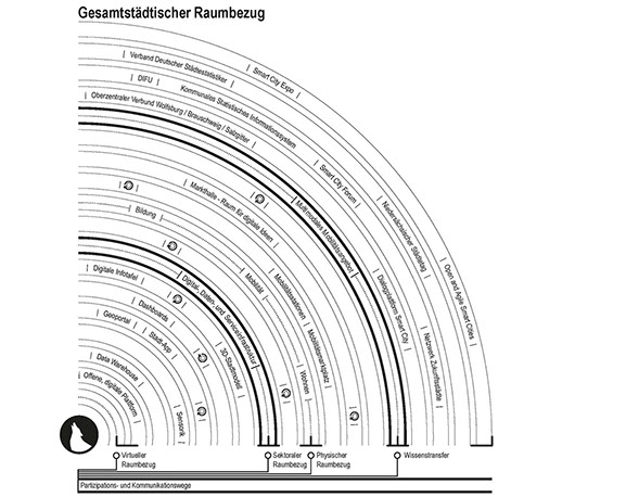 Der Schwerpunkt liegt bei lernenden, übertragbaren Umsetzungsstrategien zur Gestaltung des digitalen Wandels. Dabei wird an dem bereits vorhandenen netzwerkorientierten Ansatz mit den zahlreichen Partnern der Stadt angeknüpft. Um dieses Netzwerk effizienter nutzen zu können, bedarf es als Ausgangsbasis einer breit aufgestellten Digital-, Daten- und Serviceinfrastruktur in eigener Verantwortung. Eine offene Datenplattform als Open-Source-Ansatz führt Daten zusammen, macht sie operabel, hebt die Synergien aus dieser Datenverarbeitung und dient als Grundlage für darauf aufbauende Dienstleistungen. Somit wird bspw. nicht nur die Müllentsorgung effizienter. Zudem werden Bewohner besser und schneller über das Verkehrsangebot am jeweiligen Ort informiert. Ein Data Warehouse ermöglicht den Datenaustausch und dessen Verarbeitung innerhalb der Stadtverwaltung inkl. der Bereitstellung gegenüber der Öffentlichkeit. Eine Stadt-App dient als zentrales Dienstleistungsinstrument des Konzerns Stadt, um Bürgerservices sowie neue IuK-Wege zu eröffnen.