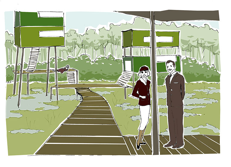 Im Rahmen des Kunstprojektes „Emscherkunst“ wurde die Idee des Naturhotels und der temporären Universität von der Künstlergruppe Observatorium aus Rotterdam mit dem Projekt „Warten auf den Fluss“ umgesetzt. Das Projekt hat sich im Ruhrgebiet etabliert und wird erfolgreich als Hotel an wechselnden Standorten genutzt.