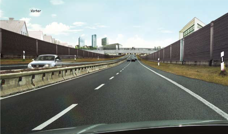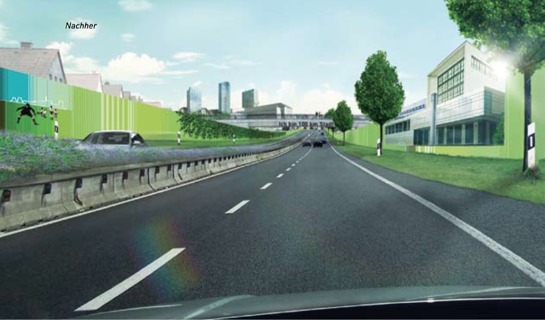 Gestaltungskonzept für eine Schallschutzwand ohne signifikante Mehrkosten.