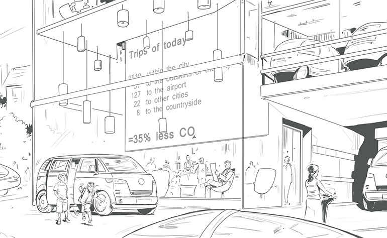 wickelte orange edge das Konzept der MicroCity, eine Infrastruktur für moderne Mobilitätsdienstleistungen, die, angepasst an das jeweilige städtische Umfeld, Parken, Sharing-Angebote, öffentlichen Nahverkehr, Services, Dienstleistungen und kulturelle Angebote miteinander verbindet. Die MicroCity zeigt, wie in Zukunft Mobilität und städtische Funktionen auf neuartige Weise miteinander verschmelzen und dabei lebendige Stadträume entstehen können.