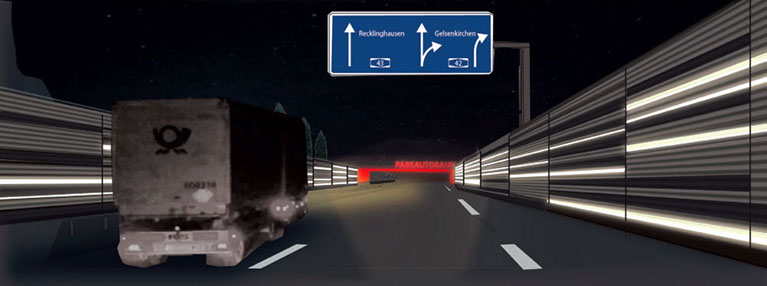 Geprüft wird zurzeit die Möglichkeit der Integration von Lichtelementen in die Lärmschutzwand, die bei Nacht die Orientierung der Autofahrer verbessern könnten.