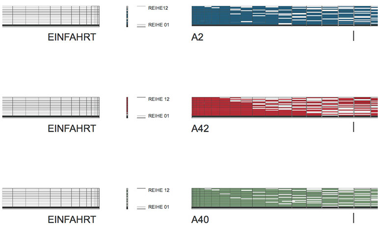 Das Gestaltungskonzept für die A 43 spiegelt die besondere Rolle der A 43 als verbindende Nord-Süd-Achse wider. Die Farben der querenden Autobahnen helfen dem Autofahrer, sich in der dichten Abfolge der Autobahnkreuze und Ausfahrten der A 43 einfacher zu orientieren. Für die A 43 wird ein dezenter Grundton (die Aluminiumfarbe der Wand) gewählt. Vor jedem Autobahnkreuz werden die Leitfarben der querenden Autobahn in den Grundton gemischt. Dadurch werden die vier Bereiche der Autobahnkreuze besonders betont und besser voneinander unterscheidbar. So „mischt“ sich die A 43 auf der Ausbaustrecke insgesamt vier Mal mit den anderen Autobahnen. Die Farben leiten den Autofahrer auf die gewünschte Ausfahrt. Die Lärmschutzwand zwischen den Autobahnkreuzen wird mit horizontalen Linien gestaltet, die sich zu den Ausfahrten verdichten.