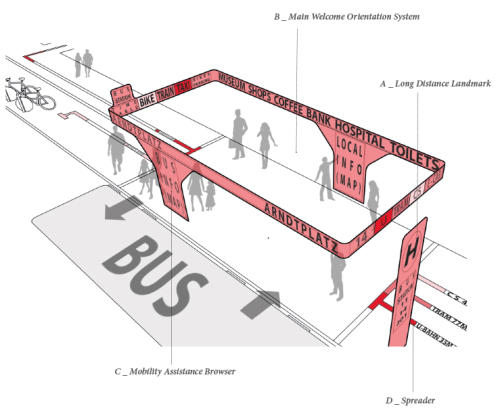 Im Rahmen des EU-Forschungsprojektes „Nodes“ entwickelte orange edge für die Stadtwerke Osnabrück Entwurfsprinzipien für Mobilpunkte. Sie machen deutlich, wie multimodale Bewegungsabläufe an einer Station strukturiert und optimiert werden müssen, um einen hohen Nutzungskomfort, z.B. im Umsteigevorgang zwischen ÖV und Rad, zu erzeugen. Ebenso wird gezeigt, wie die neuen Angebote im Stadtraum gut sichtbar werden und ihn gleichzeitig gestalterisch und funktional aufwerten. Flow Design (eine Gestaltung, die verkehrliche Aspekte unterstützt) und Urban Design (Gestaltung im Stadtraum) wurden dabei miteinander verbunden.