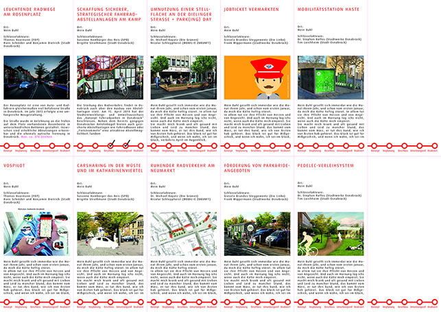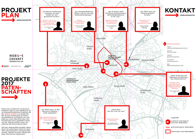 orange edge wurde mit der Erarbeitung eines Kommunikationsprozesses beauftragt, der konkrete Umsetzungsallianzen initiieren soll. Durch einen aktiven Dialog mit den Vertretern der Politik, zentralen Stakeholdern und engagierten Bürgern wurde ein konstruktives Klima geschaffen. Im ersten Mobilitätsforum mit 150 Teilnehmern konnten Vertreter aller Parteien als Paten gewonnen werden, die konkrete Aufgaben übernehmen. So konnten einfache und gleichzeitig schlagkräftige neue Kooperationstrukturen geschaffen werden. Erste Projekte werden derzeit umgesetzt.