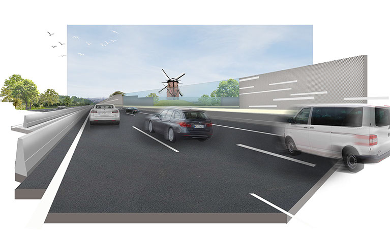 Fast-Lane-Park – Lärmschutzwandgestaltung A57