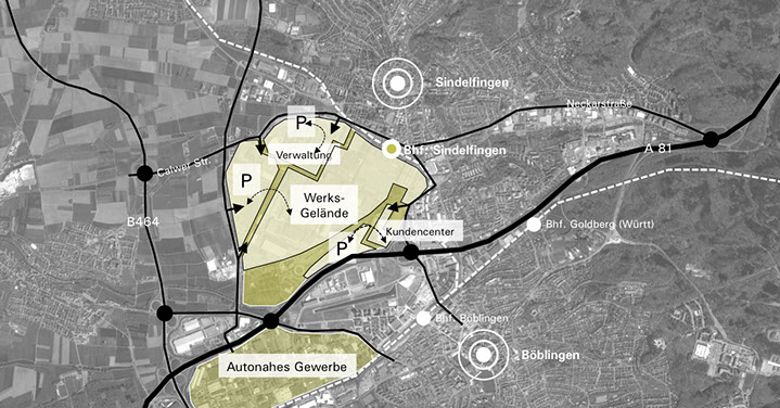 Die Stadt Sindelfingen möchte den Zugang zur Innenstadt städtebaulich neu gestalten und verkehrlich aufwerten. Als zentrales Element für die Neudefinition der Ankommenskultur in der Stadt soll der zukünftige Mobilitätspunkt am Bahnhof dienen. Konzipiert werden soll der Mobilitätspunkt modular mit verschiedenen Informations- und Mobilitätsangeboten, wie beispielsweise Radboxen, E-Bike-Lademöglichkeiten, Kiosk, Elektro-Schnellladesäulen und Car-Sharing-Stellplätzen. Dabei wird insbesondere in Zusammenarbeit mit dem angrenzenden Daimler-Werk, der Deutschen Bahn, dem VVS und dem VRS auf die Umsetzungsfähigkeit und Zukunftsträchtigkeit des Projektes geachtet.